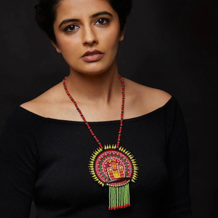 Dive into the vibrant world of Kerala's ritualistic Theyyam art. Each piece captures the spiritual energy of this ancient performance, transforming folk mythology into wearable art.