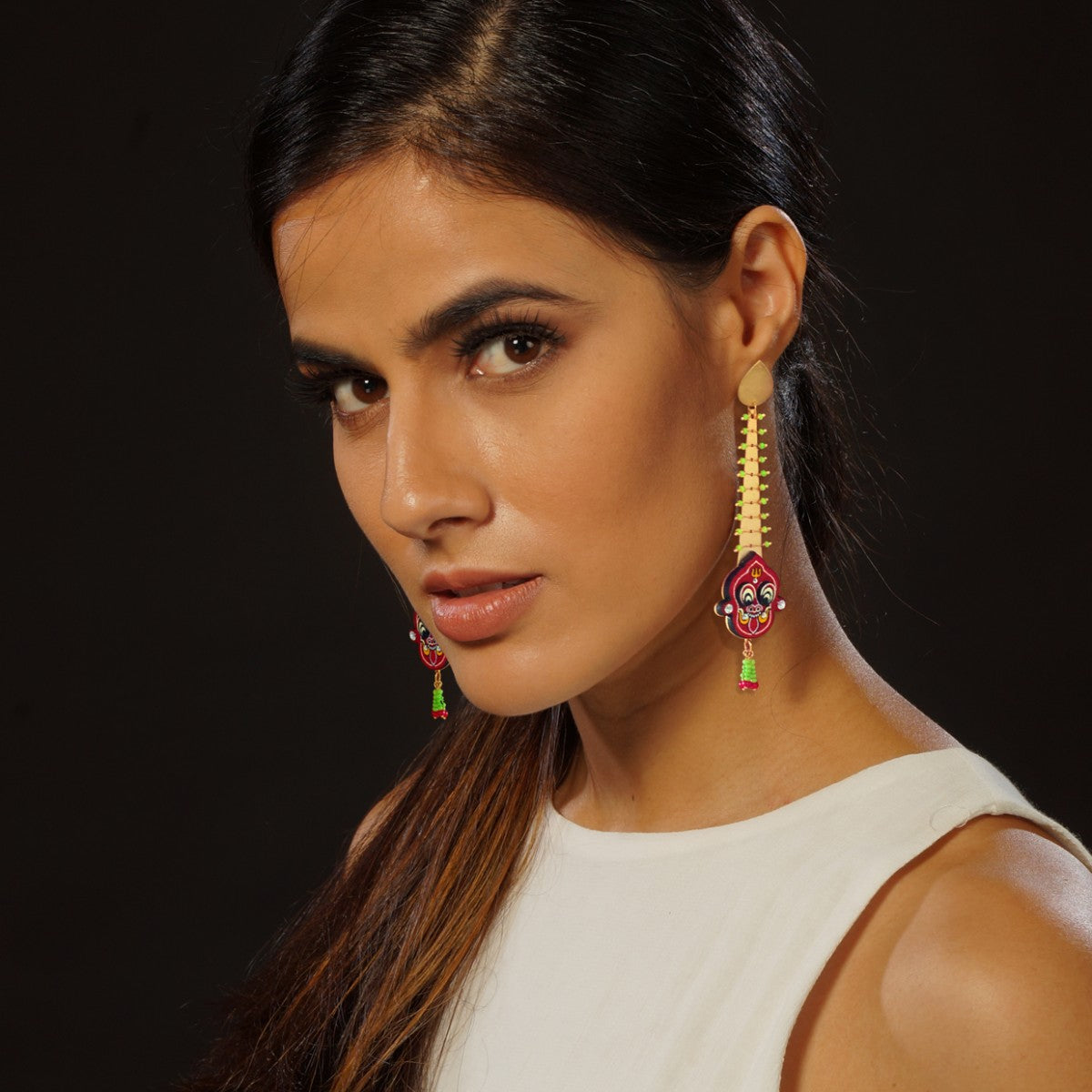 The collection draws inspiration from Gulikan's fierce energy which is captured through bold geometric patterns and dramatic colour contrasts. The towering mudi (headgear) symbolises the cosmic power and authority. Each handcrafted piece serves as a bridge between ancient wisdom and contemporary expression, preserving the essence of these profound traditions in wearable form.